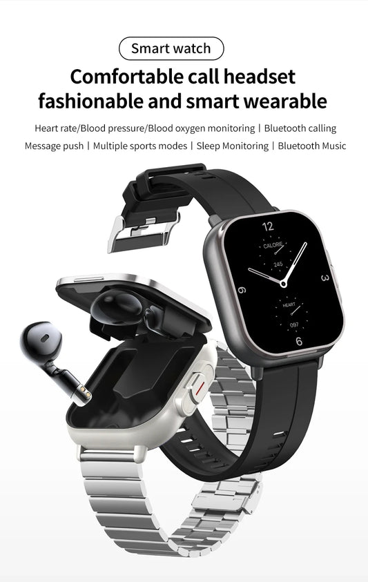 2-In-1 Smart Watch & Bluetooth Head Phones | Convenient Bluetooth Head Phone Carry Case Inside Smart Watch